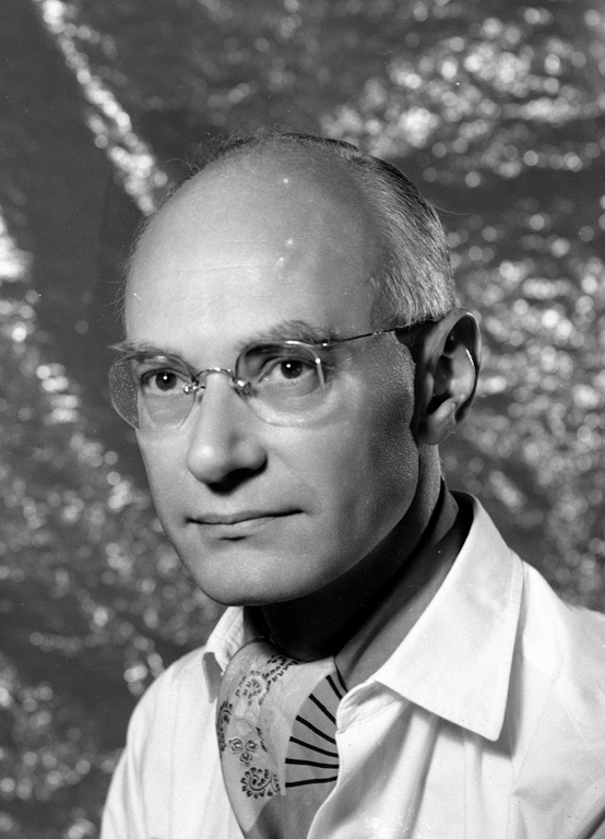 Negative, black and white. Head and shoulders, 3/4 profile portrait shot of Angus Winneke. He is wearing glasses, shirt and patterned cravat. Background appears to be patterned by speckled light. Written in black ink along upper edge: "WINNEKE 2". Silver markings on face (emulsion side) added to retouch image. No date. |